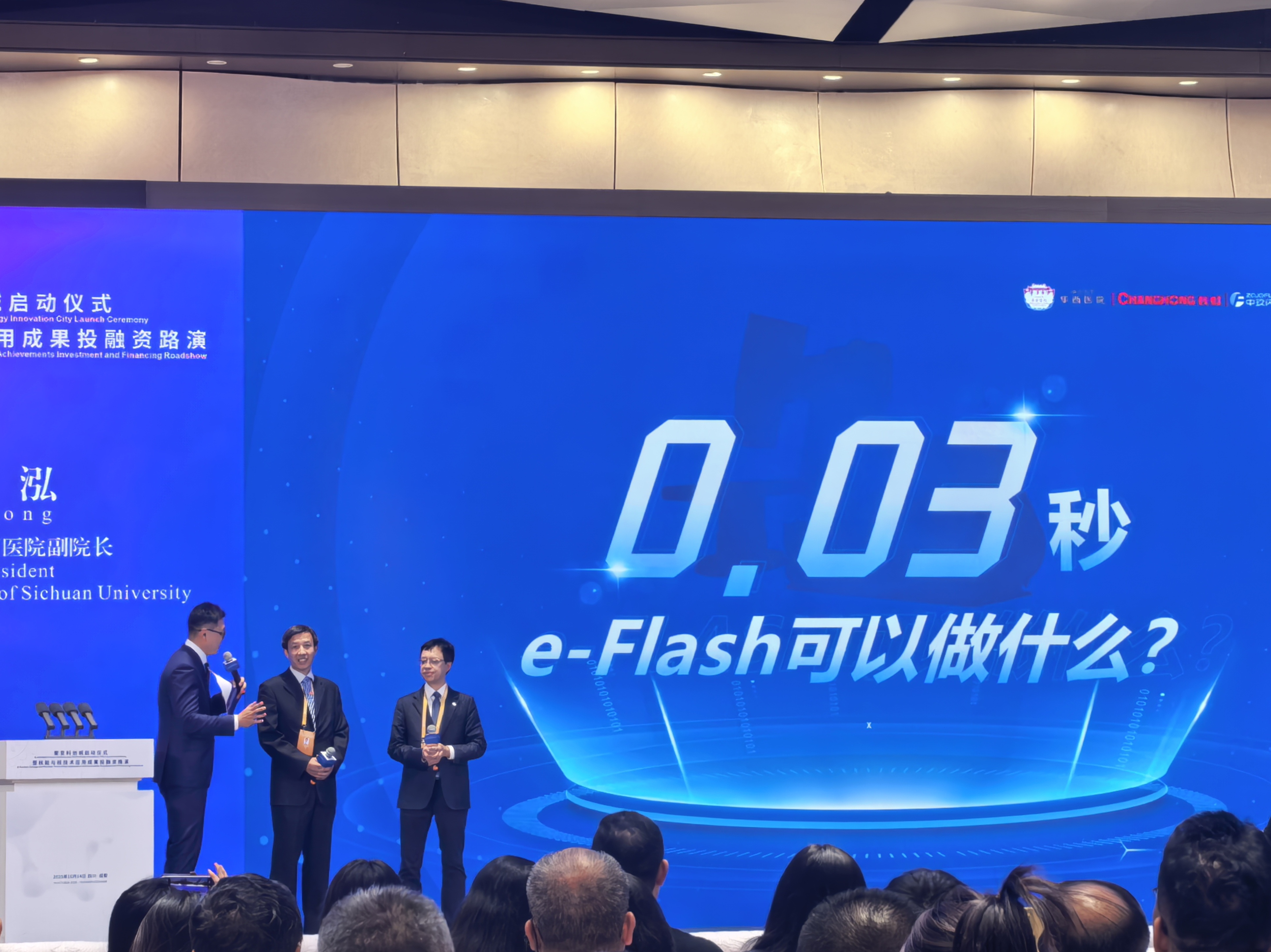 在本次路演活动的“核医疗产业成果发布”环节,长虹控股集团旗下中玖闪光医疗科技有限公司携国内首创的e-Flash 200A超高剂量率电子射线放射治疗系统亮相,并与四川大学华西医院联合进行了《0.03秒能做什么?——超高剂量率电子射线放射治疗系统(e-Flash 200A)临床试验阶段进展发布》的主题路演。四川大学华西医院吴泓副院长与中玖闪光医疗科技有限公司刘贤洪副总经理共同宣布:e-Flash 200A系统已完成5例肿瘤患者的FLASH放疗。更令人振奋的是所有接受治疗的患者截止发稿前一般情况良好,无特殊不适,阶段性验证了e-Flash 200A针对浅表肿瘤具有良好的安全性和有效性。